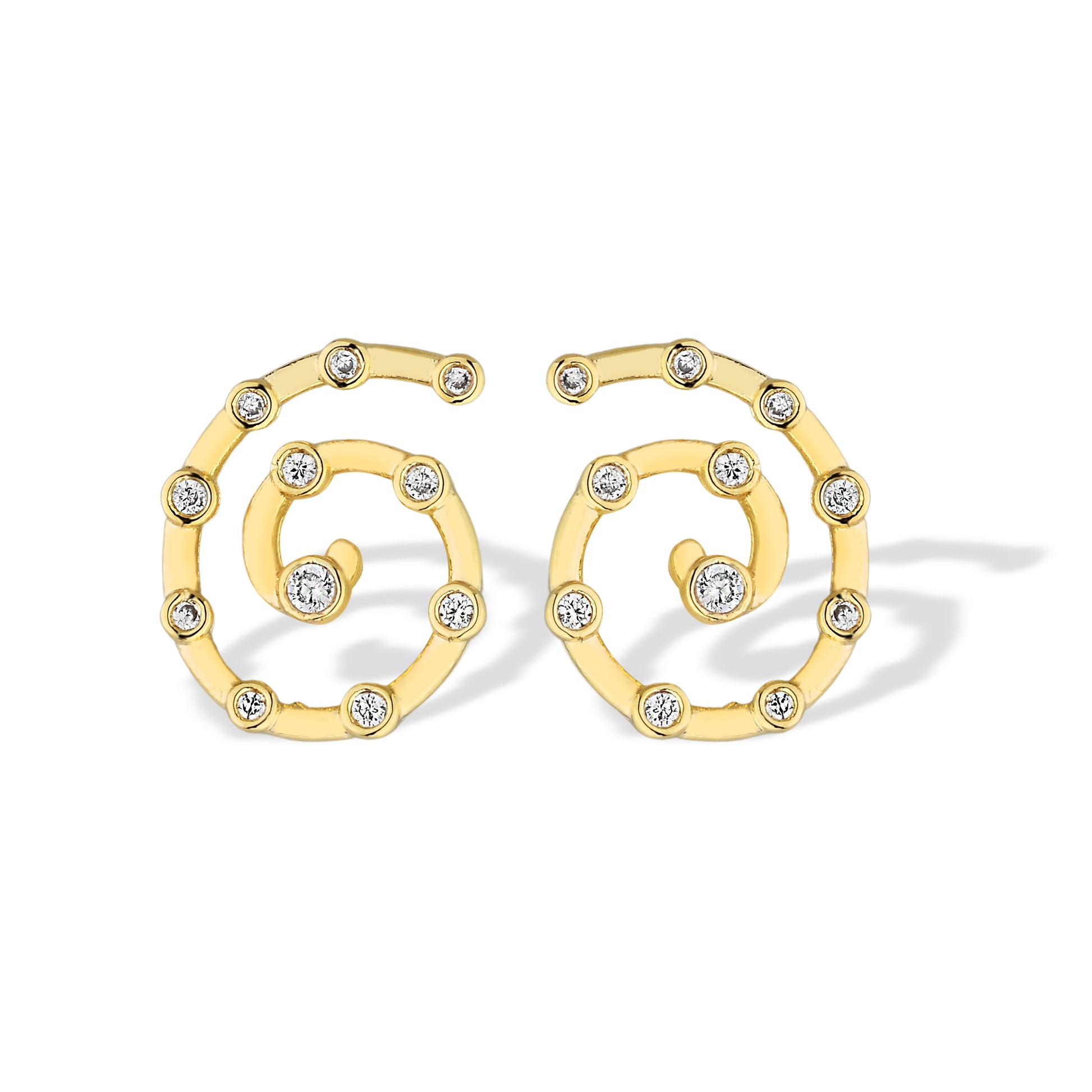 The Aurea Spiral Earrings display a delicate spiral design with cubic zirconia accents that add subtle brilliance. Their symmetrical shape and flawless finishing make these earrings elegant, timeless, and effortless to pair—from everyday wear to special occasions.