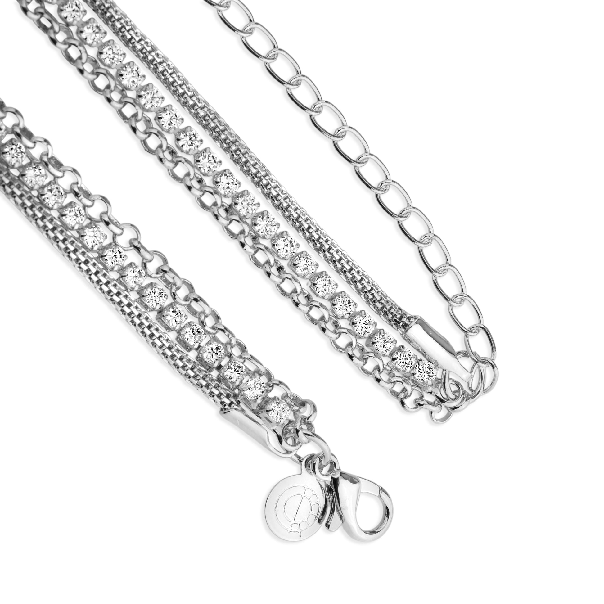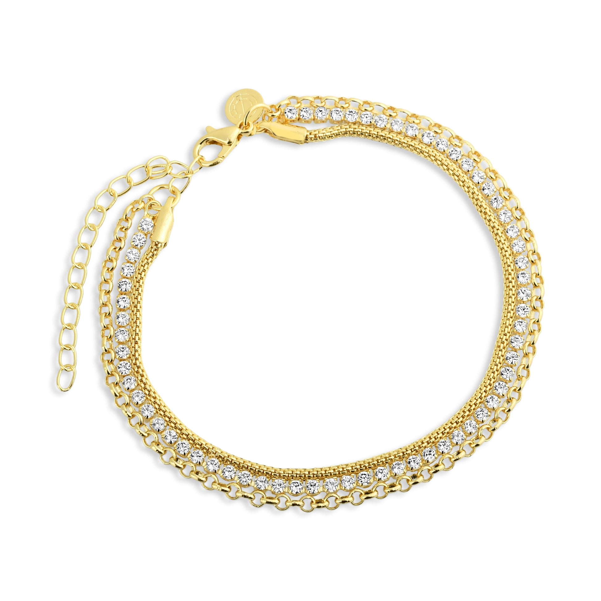 The Triple Shine Bracelet combines three chains in perfect harmony, creating a luminous effect with its rows of cubic zirconia. The ideal piece for those who love sophisticated sparkle with everyday versatility.